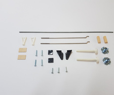 Karakteristike: Set pribora za zrakoplove sadrži 2 kom uronjajuće matice M5, 2x plastični vijak M5 x 40mm s cilindričnom glavom prem. 12mm, 2 kom poluga kormila sa bazom 10,5x11mm, ukupna visina. 19mm, s podloškama i vijcima M2x12mm. Sljedeće 2 kom plastične vilice za vijak M2 dužine 20mm, 2 kom oc. šipke s navojem M2x18mm i savijanjem Z ukupno. dužina 110mm, čelična žica prom. 2mm i dužina 220mm, 3kom provrt 2x10mm, 2kom drveni klin prom. 6 x 15mm, 2 kom šperploče 1mm i dimenzija 10x15mm. Komplet dodatne opreme s povoljnom cijenom koristit će se u izradi manjih modela zrakoplova.