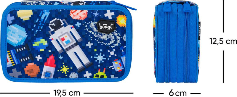 Dvoetažni školski pencil case s ojačanim leđima za lakše rukovanje.