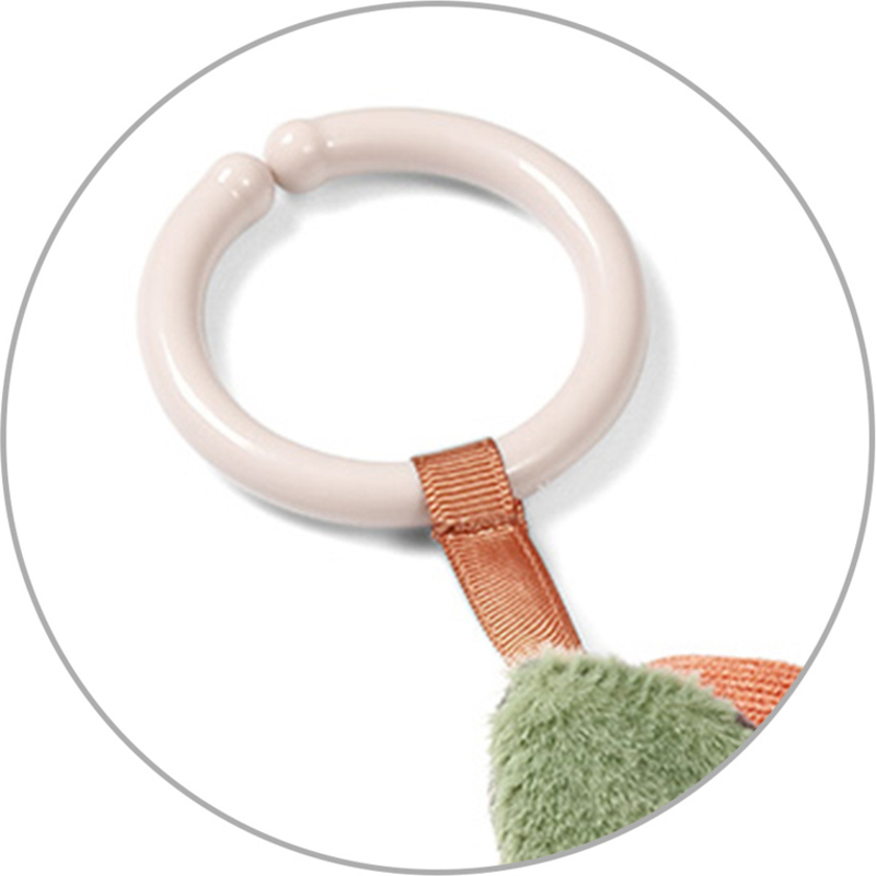 - Ogledalo: Sigurno ogledalo okruženo šarenim vrpcama nudi priliku za otkrivanje vlastitog odraza. Potiče znatiželju vašeg djeteta i stimulira njegov vid. Potiče ga na dosezanje i dodirivanje, čime razvija koordinaciju oko-ruka.