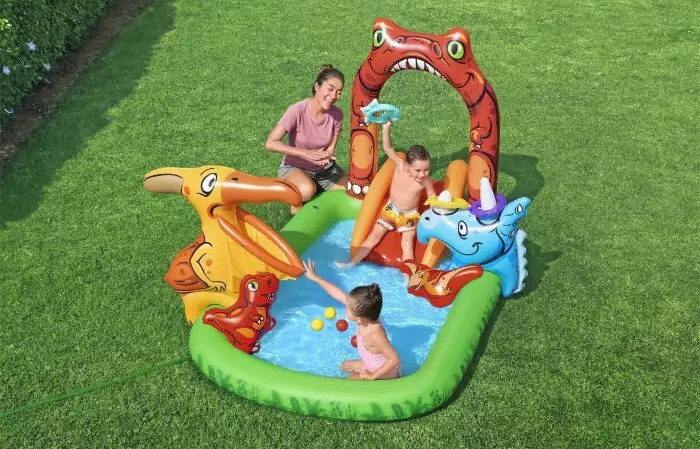Pripremite se za ljeto ispunjeno smijehom i radošću s napuhanim vodenim igraćim centrom Jurski svijet od BESTWAY-a, koji će vašoj djeci donijeti nezaboravna iskustva, a vama mirnu dušu, znajući da su vaša djeca sigurna.