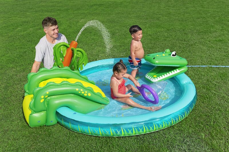 Oslobodite maksimalnu vodenu zabavu za svoju djecu s igračim centrom Bestway® s motivom krokodila. Zahvaljujući svojim velikodušnim dimenzijama 224 x 181 x 72 cm, ovaj uzbudljivi igraći centar nudi dovoljno prostora za avanture pune vode i pruža sate zabave direktno u vašem vrtu.