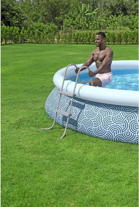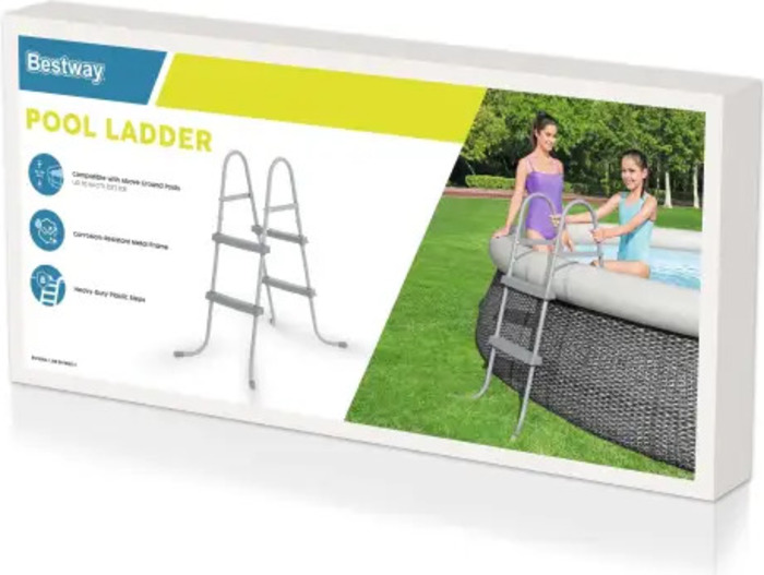Stepenice za bazen s metalnim okvirom zaštićenim od hrđe. Plastične obloge stepenica za bolji korak. Bestway 58430 je ulazna vrata za osvježenje.