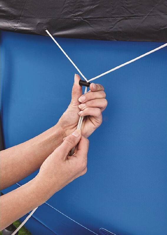 - Promjerom 4,57 m čini dodatni korak za zaštitu bazena od lišća, kiše i kroz ugrađene rupe sprečava nakupljanje oborina vode