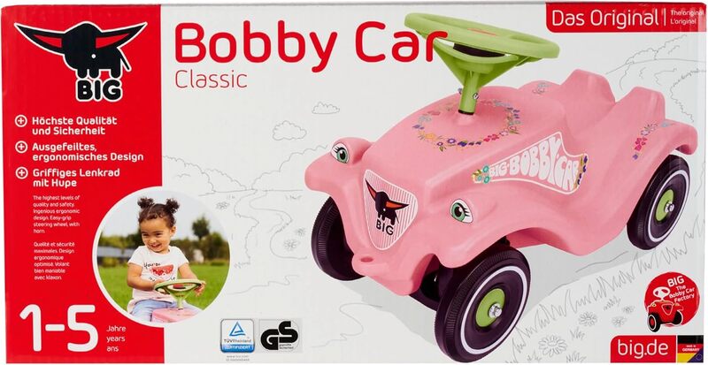 Big Auto izbacivač BIG BOBBY CAR CLASSIC roza sa cvijećem