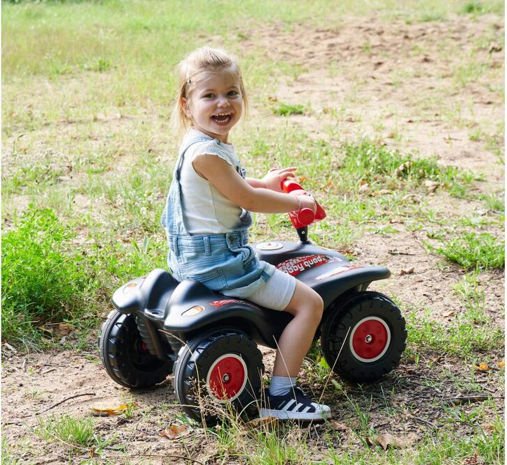 Održač Bobby Quad Racing renomirane tvrtke BIG je vozilo koje podsjeća na pravu četverociklu. Stabilan i siguran dizajn - idealan za djecu koja započinju svoje avanture s vozilima. Dizajnirano tako da djeca mogu testirati i razvijati dodatne vještine - uspinjanje, silazak, guranje i upravljanje. Idealni poklon za dijete od 3 godine.