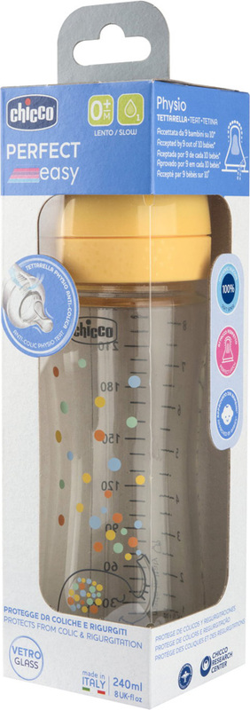 CHICCO Bočica za dojenčad staklena Perfect Easy 240 ml slow silikon neutral 0m+