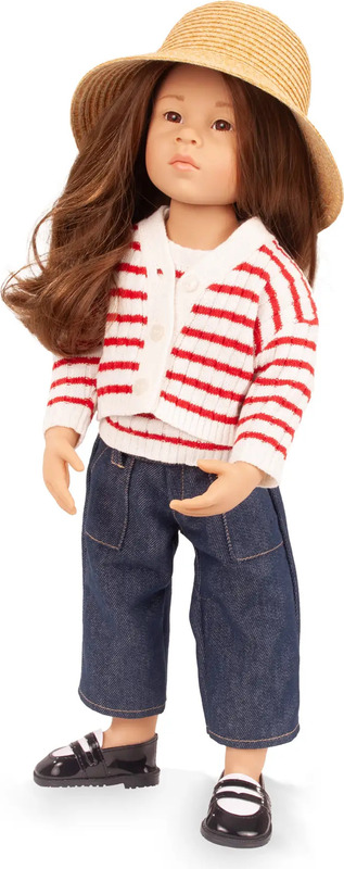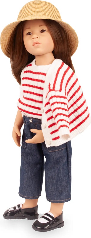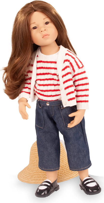 Upoznajte kvalitetnu stajaću lutku Emiliu. Stilizirana je u nježno pletenom prsluku s usklađenim džemperom, pažljivo izrađenim trapericama, elegantnim Mary Jane cipelama i šarmantnim šeširom. Svaki detalj odražava kvalitetu i ljubav prema zanatu. Emilia je izdržljiva suputnica, dizajnirana da inspirira kreativnost i donosi radost već samim divljenjem.