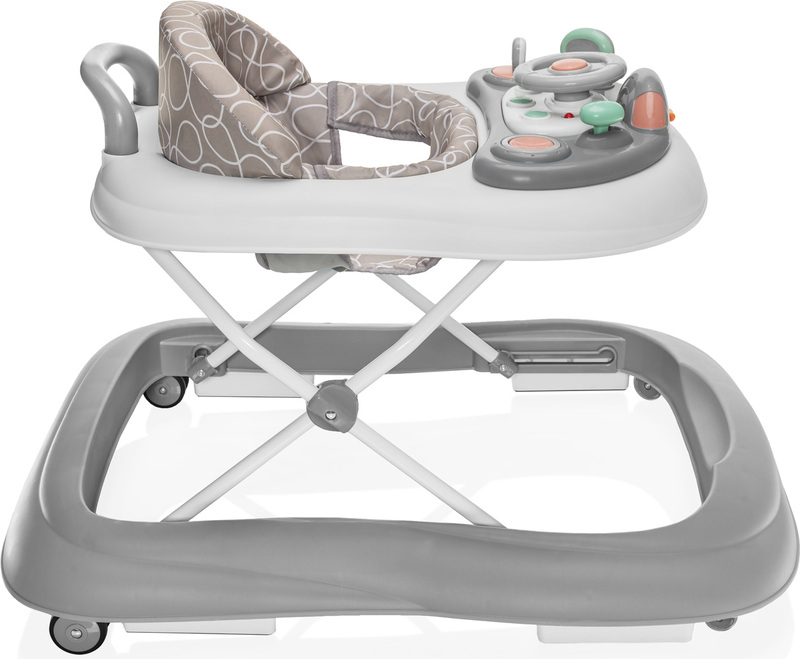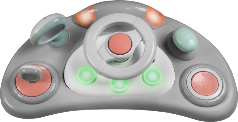 Uključena je odvojiva interaktivna ploča puna poticaja. Nudi svjetlosne efekte, vesele melodije i zvukove automobila, a tu je i okretni volan i drugi igraći elementi. Dijete tako ne samo da vježba hodanje, već istovremeno razvija svoja osjetila, koordinaciju i finu motoriku.