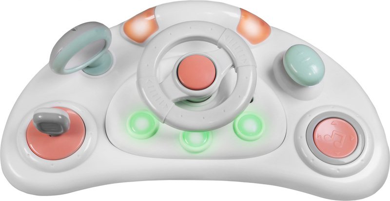 Uključena je odvojiva interaktivna ploča puna poticaja. Nudi svjetlosne efekte, vesele melodije i zvukove automobila, a tu je i okretni volan i drugi igraći elementi. Dijete tako ne samo da vježba hodanje, već istovremeno razvija svoja osjetila, koordinaciju i finu motoriku.