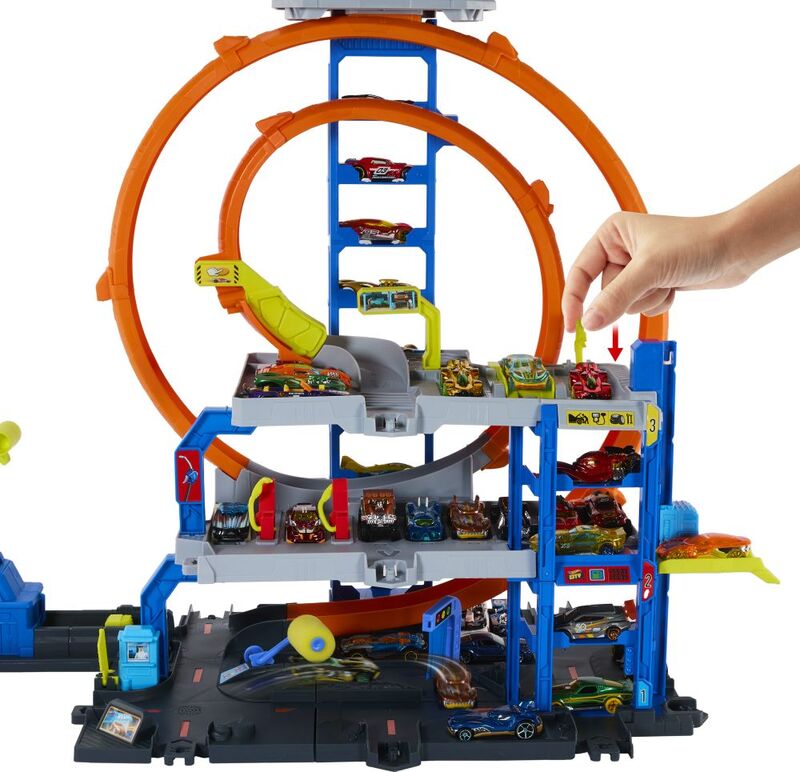 Set igračaka Hot Wheels Mega Loop Garage nudi tri razine igre s autićima, koje će mlade vozače privući maštovitim pričanjem priča i epskim kaskaderskim potezima.