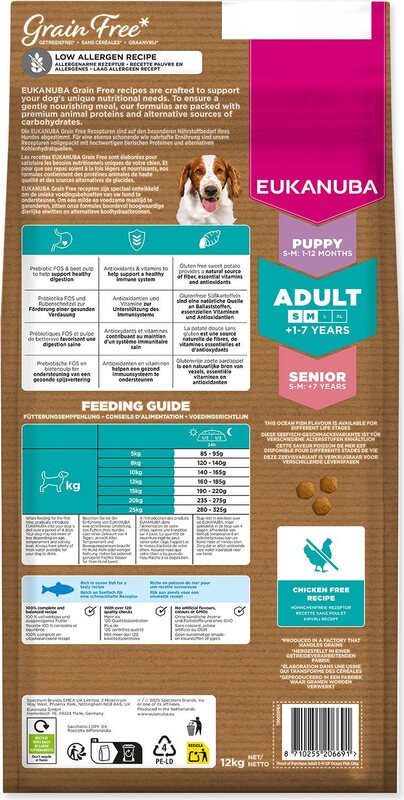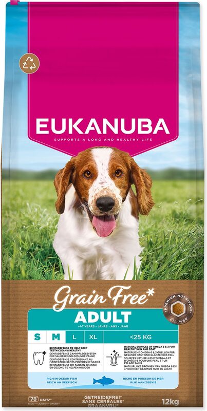 Hrana EUKANUBA Grain Free Adult Small & Medium bogata morskom ribom 12 kg