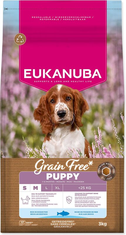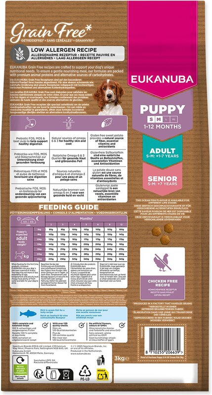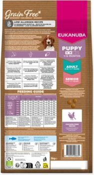 EUKANUBA Grain Free receptura za štenad malih i srednjih pasmina pažljivo je sastavljena kako bi hrana bila bez uobičajenih alergena.