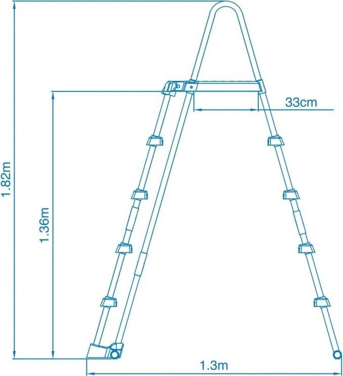 Ljestve za bazene marke Intex s plastičnim stepenicama, koje se po potrebi mogu ukloniti. Izdržljiva konstrukcija s maksimalnom nosivošću od 130 kg. Široke ručke na vrhu za čvrsto držanje. Vrlo jednostavan sklop, koji možete riješiti u trenutku. Dizajniran za bazene s najvećom mogućom visinom od 1,32 m.