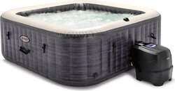 Intex Inflatable jacuzzi Pure Spa model 2025 jamči relaxaciju bez napuštanja vlastitog doma. Jacuzzi nudi izniman luksuz i udobnost za 6 osoba. Može se instalirati unutar i izvan kuće. PureSpa ima filtračnu pumpu, grijni uređaj i korisnički prijateljski kontrolni panel. Također je opremljena integriranim sustavom slane vode i zaštite od kamenca, koji sprječava taloženje kamenca i održava vodu čistom i mekom. Izrađena je od 3-slojnog materijala SUPER-TOUGH, koji je otporan na sunčevo zračenje i slanu vodu. Jacuzzi ima konstrukciju od 47 FIBER-TECH BEAMS (jakih poliesterskih vlakana). Jacuzzi je vrlo stabilna, jer je proizvedena pomoću visoko kvalitetne tehnologije vlakana. Ova metoda se temelji na korištenju više vlakana, koja jamče trajnost i stabilnost konstrukcije. Također je opremljena s dva držača, koja olakšavaju transport jacuzzija. Termostat održava temperaturu vode na željenoj ciljnoj temperaturi do 40 stupnjeva. Grijaći sustav automatski se uključuje kada temperatura padne ispod postavljene vrijednosti. Temperatura se prikazuje u stupnjevima Fahrenheita ili Celzija. Jacuzzi ima 170 zračnih mlaznica, koje jamče ugodnu i opuštajuću masažu. Prilikom instalacije oslonite se na integrirani sustav napuhavanja Quickfill™ – samo ga priključite u utičnicu i jacuzzi će se sam napuhati.