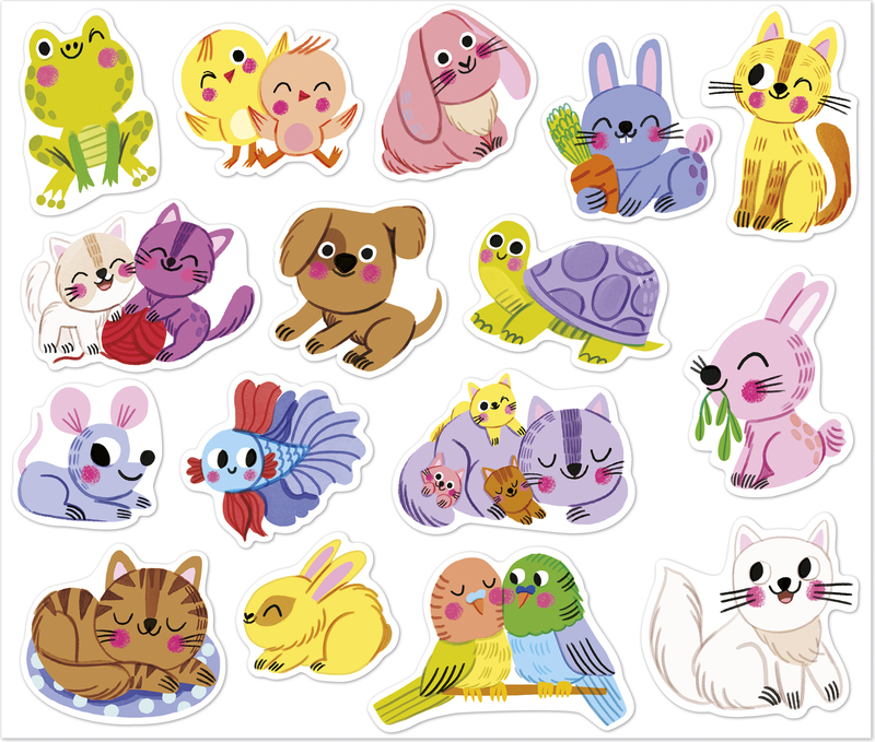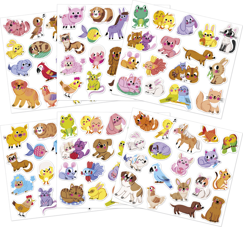 Sažite više informacija o kućnim ljubimcima! Ova knjiga sa naljepnicama u obliku psa sadrži ukupno 100 velikih naljepnica s tematikom kućnih ljubimaca, raspoređenih na više listova.