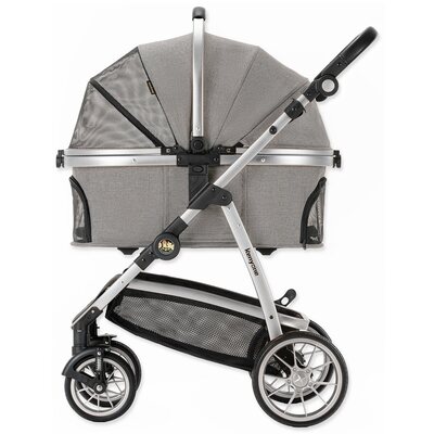 - Univerzalna upotreba: Kolica se sastoje od dva dijela – okvira i nosiljke. Kada se koriste zajedno, čine multifunkcionalna i stylish kolica za pse. Ako se nosiljka koristi samostalno, služi kao mobilna transportna kutija ili auto transport. Transportna kutija za kućne ljubimce opremljena je bočnim remenom i sigurnosnom kopčom koja osigurava sigurnost vašeg ljubimca prilikom korištenja u automobilu.