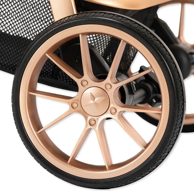 Sigurnosna kočnica osigurava da kolica ostanu čvrsto na mjestu, čak i kada stanete na nagibu ili neravnom terenu. Također su opremljena izdržljivim gumama.