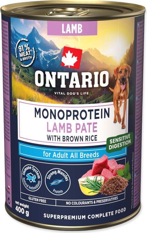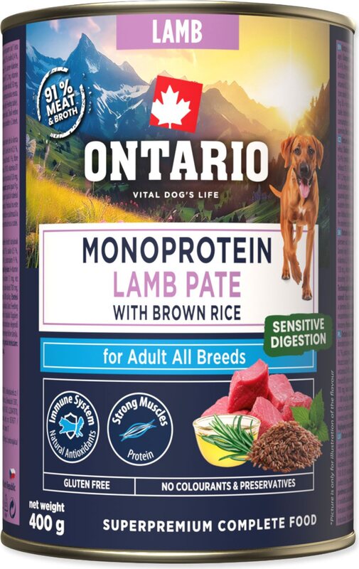 Konzerva Ontario Adult monoprotein janjetina pašteta s smeđom rižom 400g