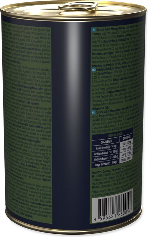 Analitičke komponente Vlažnost 75.00 %; sirovi proteini 13.00 %; sirove masti i ulja 6.00 %; sirova vlakna 0,70 %; sirovi pepeo 2.80%. Dodatne nutritivne tvari na 1 kg Vitamin A 4000MJ; Vitamin D3 130MJ; Vitamin E 130mg; kelat cinka hidroksilnog analoga metionina 200mg; kelat mangana hidroksilnog analoga metionina 40mg; kelatna forma željeza, hidrat 70mg; kelat bakra hidroksilnog analoga metionina 16mg; inaktivirane kvasce obogaćene selenom 1.10mg; DL-Metionin 1000mg; Taurin 500mg; L-karnitin 50mg.