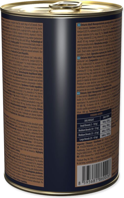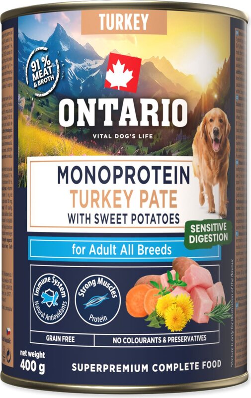 Konzerva Ontario Adult monoprotein pureća pašteta s batatima 400g