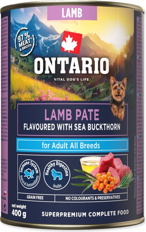 Konzerva Ontario Adult pašteta od janjetine s okusom pasjeg trna 400g