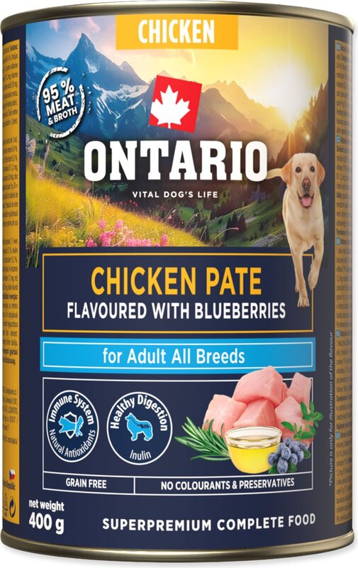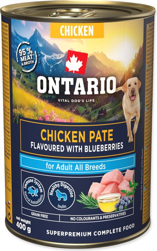 Konzerva Ontario Adult pileća pašteta s okusom borovnica 400g