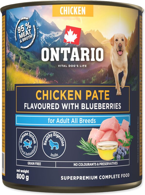 Konzerva Ontario Adult pileća pašteta s okusom borovnica 800g