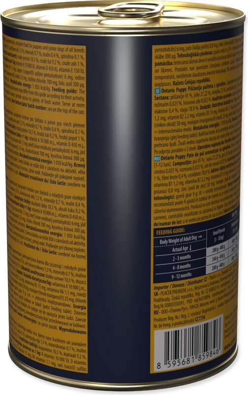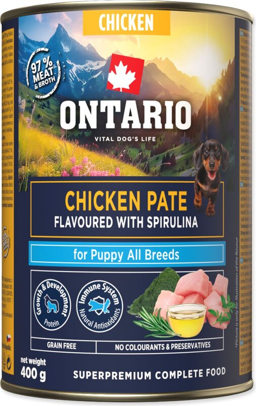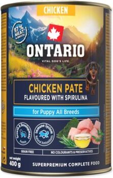 Konzerva Ontario Puppy pileća pašteta s okusom spiruline 400g