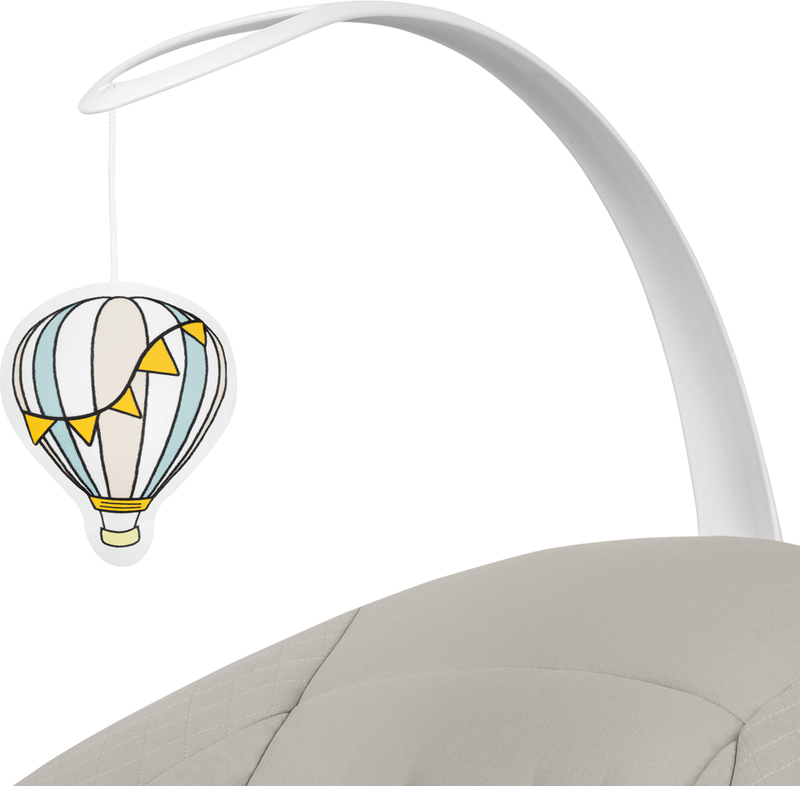 Zabava: U uređaju je unaprijed instalirano do 12 mirnih melodija s podesivom glasnoćom, koje učinkovito umiruju bebu. Podesivi luk s igračkama istovremeno održava pažnju djeteta i potiče ga na ispružanje ruku. U slučaju potrebe, također se može demontirati.