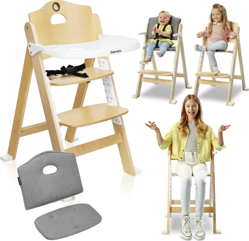 Praktičan i ekološki namještaj: Robustan pladanj izrađen od ojačanog plastike izdržat će godinama - može se ukloniti i prati u perilici posuđa. Pomoću praktične ručke možete učinkovito premještati stolicu, a za njezino podešavanje ne trebate nikakve alate. Stolica Lionelo Floris je ekološki prihvatljiva - izrađena je od drva koje potječe iz održive industrijske proizvodnje.