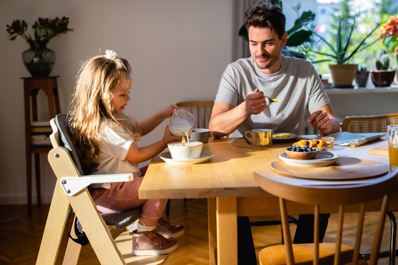 Dobro se uklapa za hranjenje mališana, ali i za učenje samostalnog jedenja. Također možete ukloniti pladanj i donijeti je za zajednički stol, što pozitivno utječe na stvaranje socijalnih odnosa.