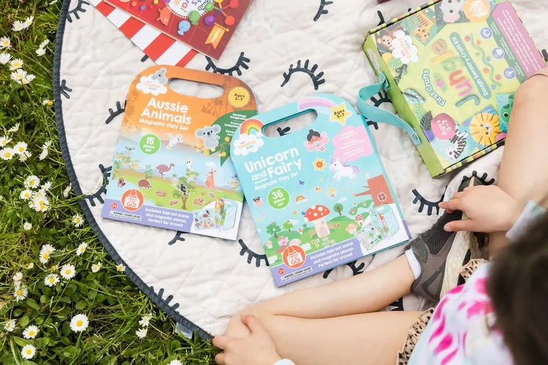 Set sadrži 24 magnetskih dijelova uključujući sklopivo okruženje sa životinjama s farme, farmerima, usjevima i njihovim okruženjem, sve ilustrirano od strane lokalnog umjetnika. Namijenjen je djeci uzrasta od 3 do 7 godina i donosi sate kreativne zabave, bilo kod kuće ili na putu.