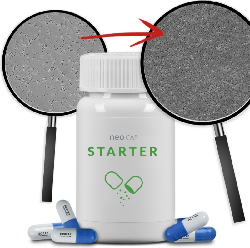 Neo Cap Starter je mješavina nekoliko različitih sojeva akvarijskih bakterija i važnih hranjivih tvari koje im pomažu da se optimalno razvijaju. Ovi sojevi bakterija specijalizirani su za uklanjanje amonijaka i drugih štetnih tvari, što omogućava ranije naseljavanje riba i škampi u akvarij.