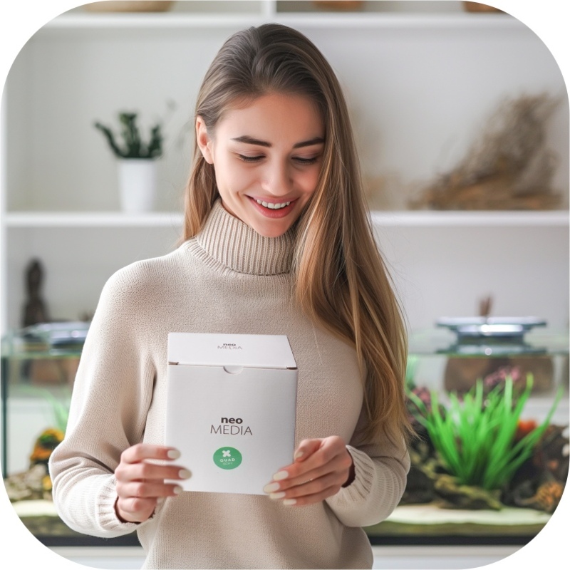 Na temelju tehnologije Aquario, stručnjacima tvrtke Neo Media Premium uspjelo je stvoriti fin, ali neometan por. To omogućuje neprekidno proticanje vode u duboko unutrašnjost filtracijskog medija i pruža dovoljno hranjivih tvari i kisika za nitrobakterije.