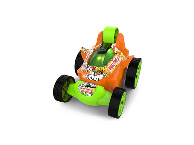 Auto na diaľkové ovládanie NINCORACERS Rolltrex oranžový s LED osvetlením v kabíne, otočnými prednými kolesami a gumovými pneumatikami. Auto umožňuje jazdu po zadných kolesách Wheelie a špeciálnu funkciu rotácie predných kolies. Prevádzka auta je na päť tužkových batérií typu AA (3ks do autíčka, 2ks do vysielača) (batérie nie sú súčasťou balenia). Vysielač pracuje spoľahlivo a bez rušenia, či výpadkov v pásme 2.4 GHz.