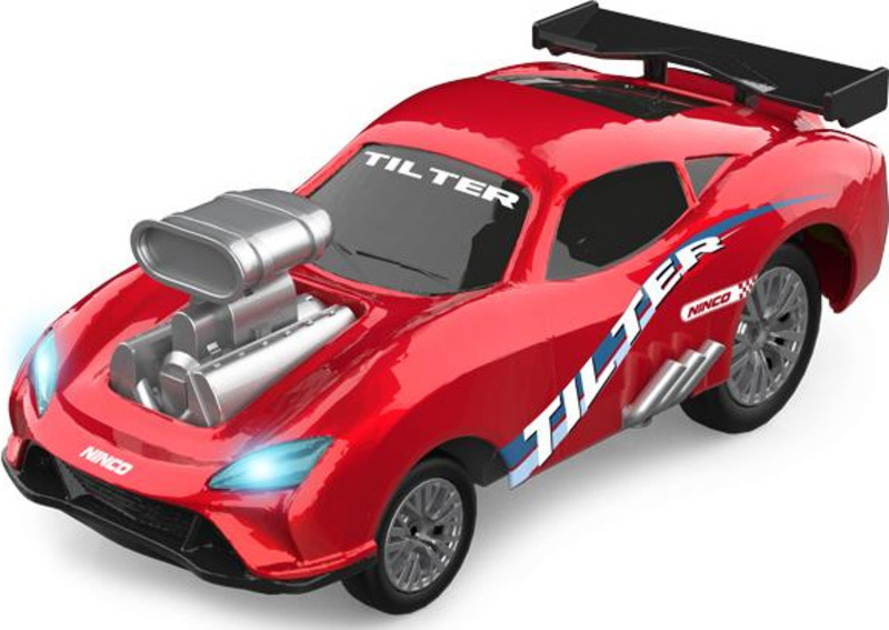 Auto na diaľkové ovládanie NINCORACERS Tilter s karosériou, ktorá sa pri zatáčaní nakláňa a dodáva tým závodný efekt rýchlej jazdy. Model obsahuje predné biele a zadné červené LED svetlá, dizajnovú karosériu s maketou motora a gumové pneumatiky. Auto má pohon 2WD na zadné kolesá jednosmerným motorom a rýchlosť je až 15 km/h. Obsahovaný volantový vysielač 2.4GHz zabezpečí ovládanie bez výpadkov. Všetko dôležité pre prevádzku je obsahom balenia, vrátane akumulátora Li-ion 7,4V 500mAh a USB nabíjača. Stačí doplniť 2x AA batérie do vysielača.