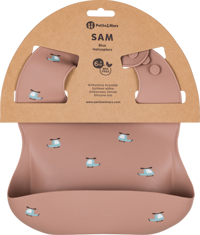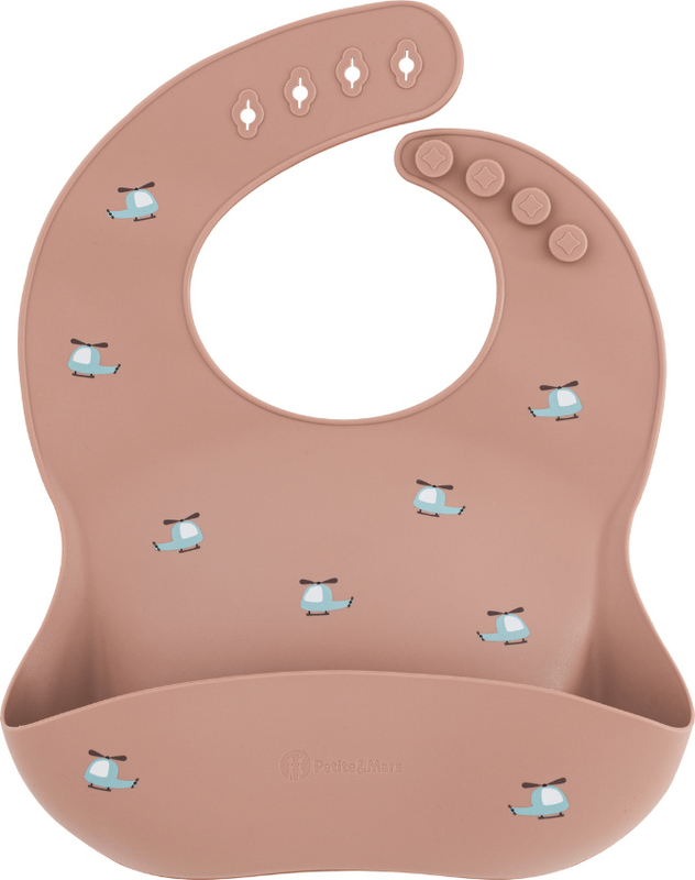 PETITE&MARS Silikonska podbradnik Take&Match Blue Helicopters 6m+