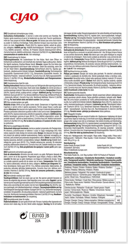 Grickanje s niskim sadržajem kalorija, bez konzervansa i bez umjetnih dodataka. Inovativna meka konzistencija grickalice Churu omogućuje vam da provodite zajedničke trenutke sa svojom mačkom igrivim i interaktivnim načinom. Zahvaljujući mogućnosti posluživanja ekstra ukusne grain free mesne poslastice na način mačjeg paketića direktno "iz ruke" otkrit ćete novi način nagrađivanja.