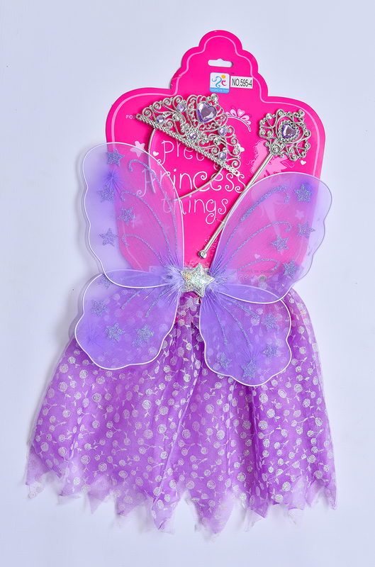 Pakiranje sadrži: platnene haljine s zvjezdastim ukrasima na korzetu i pojasom s leptir mašnom, tila suknju s rubom, odvojiva krila i tiaru. Cipele nisu uključene u pakiranje.