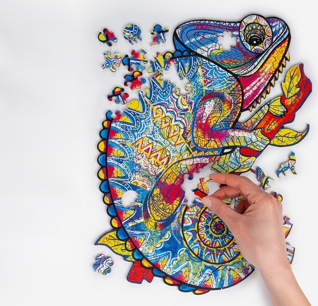 RECENTTOYS drevené puzzle Chameleón sú skvelý tip na darček pre milovníkov puzzle, farebných motívov a dizajnových hier. Skladanie pomáha vypnúť od obrazoviek, precvičiť trpezlivosť a užiť si radosť z postupne vznikajúceho motívu.