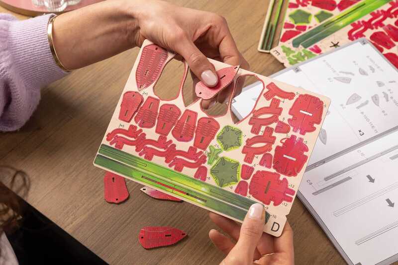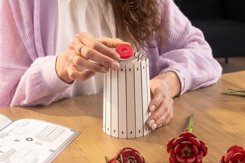 Struktura "San o Ružama" je meditativna. Komad po komad sklapate pravke slične i snažne, kao u vjetrovitom ljetu cvjeta kraljica cvijeća. Preporučujemo opuštajući projekt za 14 godina i više, pogodan za mlade i stare. Za razliku od umjetnih plastičnih cvjetova, drvo zrači kvalitetom topline koja oživljava svaku prostoriju - bilo da je na jednoj stolici, u loži ili kao dobrodošlica u hodniku.