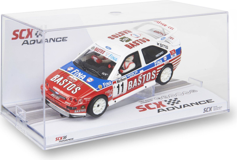 Dráhové autíčko SCX Advance Ford Escort Cosworth Ypres 95 v mierke 1:32, verzia 2.0, pre digitálne autodráhy SCX Advance. Autíčko je vybavené LED osvetlením. Na podvozku sa nachádza prepínač digital / analog - autíčko je teda možné používať na digitálnej autodráhe SCX Advance aj na analógovej autodráhe SCX Original.
