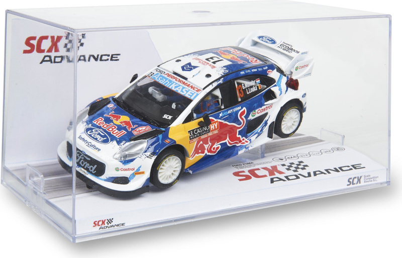 Dráhové autíčko SCX Advance Ford Puma WRC Montecarlo 24 v mierke 1:32, verzia 2.0, pre digitálne autodráhy SCX Advance. Autíčko je vybavené LED osvetlením. Na podvozku sa nachádza prepínač digital / analog - autíčko je teda možné používať na digitálnej autodráhe SCX Advance aj na analógovej autodráhe SCX Original. Autíčko má náhon 4x4.