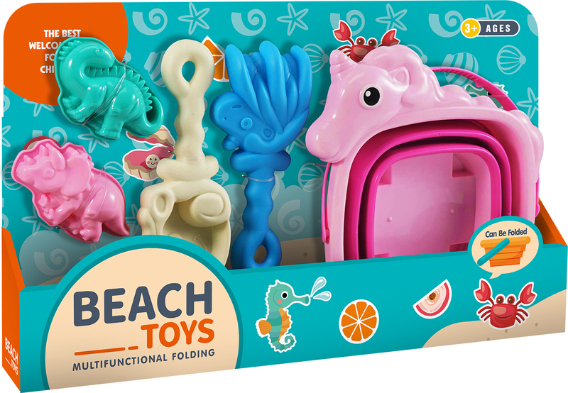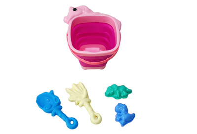 Praktični set s slatkom sklopivom kantom u obliku jednoroga koja će obradovati svaku malu princezu. Izrađeno od mekog silikona i sigurnog plastike - idealno za najmanje graditelje pješčanih dvoraca.