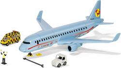 Siku World - Komercijalni zrakoplov s priborom. Veliki zrakoplov (38,5 cm) s dva snažna motora spreman je za polijetanje. Kabinsko osoblje podiže zaklopac na krovu i pomiče četvoricu već sjedalih putnika kako bi mogli zauzeti svoja mjesta.Ispod stražnje zaklopke na krovu naći ćemo prostor za odlaganje omiljenog automobila koji možemo ponijeti sa sobom na odmor. Avion je spreman za polijetanje. Zrakoplov ubrzava, podiže se i stajni trap se može povući.