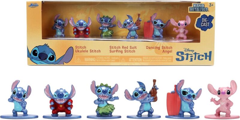 Ovaj kolekcionarski set je prava poslastica za obožavatelje plavog vanzemaljca. Službeno licencirane figurice predstavljaju kultnog junaka u raznim izdanjima: Stitch u havajskom odijelu, klasični Stitch, Stitch s daskom za surfanje, s ukuleleom, u svemirskom odijelu i Angel – voljena Stitchova.