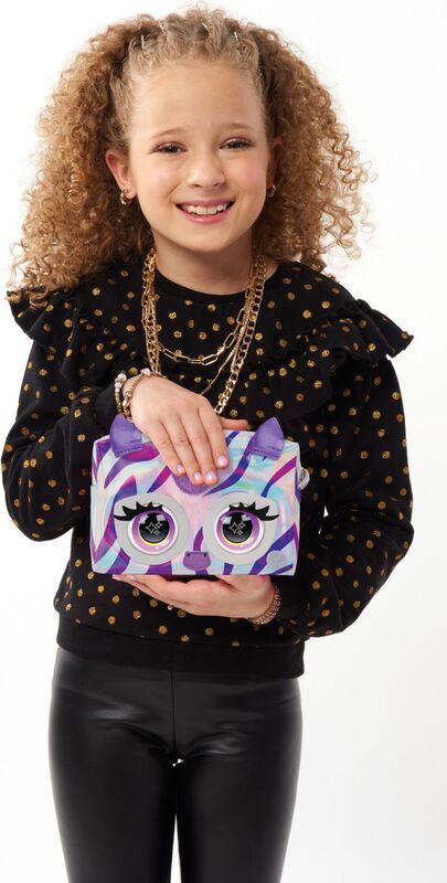 Interaktivna Zebra torbica ima velike treptajuće oči koje reagiraju na senzor dodira.
