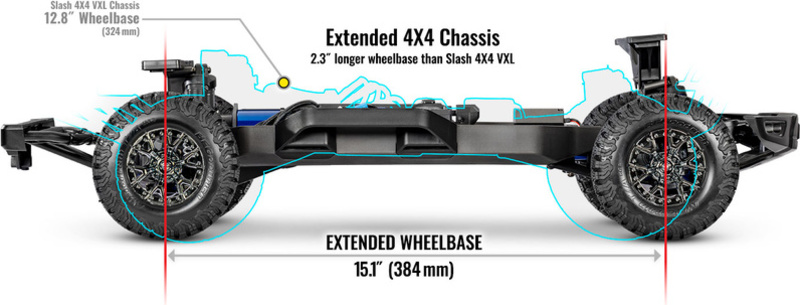 Nova produžena šasija, s međuosovinskim razmakom od 384 mm, posebno je razvijena za dimenzije ovog modela. Osim osiguravanja preciznih proporcija, duži razmak povećava stabilnost pri visokim brzinama i precizira upravljanje. Dodatne ojačanja povećala su strukturnu krutost za zahtjevniju upotrebu.