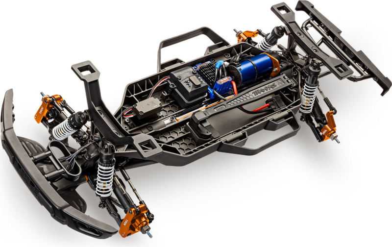 Model je opremljen svim uobičajenim pogodnostima Traxxas za maksimalnu korisničku udobnost, kao što su karoserija bez kopči, modularno šasije, pregrada za akumulator, jednostavno podešavanje regulatora s tri načina vožnje (uključujući način za djecu i početnike - 50% snage), čvrsto podešavanje međuzupčane slobode i mnogim drugim. Precizno upravljanje osigurava TQi odašiljač s preciznom mehanikom. Dostupna je, naravno, široka paleta tuning dijelova, uključujući kompletne zamjenske.