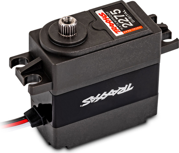 Potpuno novo, vodootporno* servo upravljanja Traxxas 2275 ima ogromnu snagu od 25 kg.cm. Servo je opremljeno metalnim zupčanicima, dva kuglična ležaja za glatko djelovanje i metalnom srednjom kutijom za učinkovito hlađenje.
